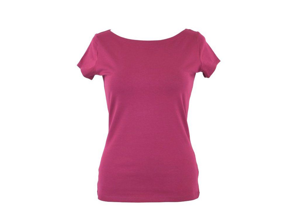 Dámské tričko z příjemného elastického úpletu. V pase projmuté, lodičkový výstřih.