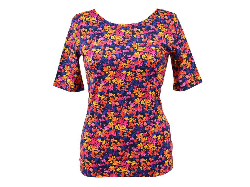 Tričko s delším rukávkem - pestrobarevná kvítka