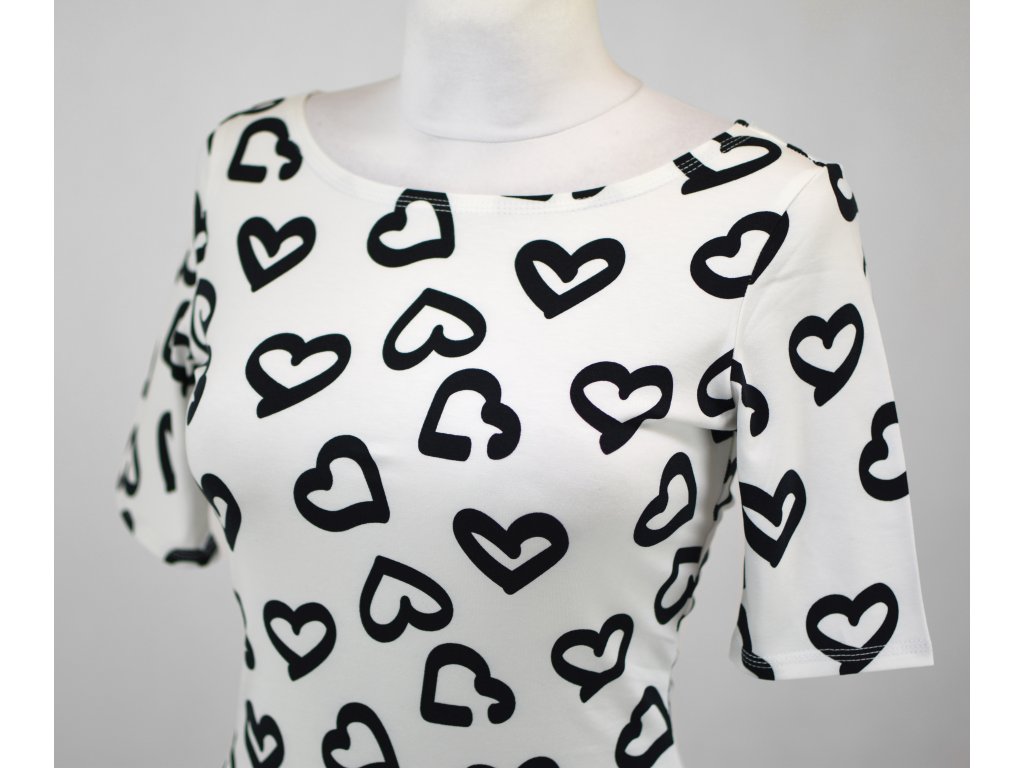 Dámské tričko z příjemného elastického úpletu. V pase projmuté, lodičkový výstřih. Rukávek je delší, ale stále nad loket. :)