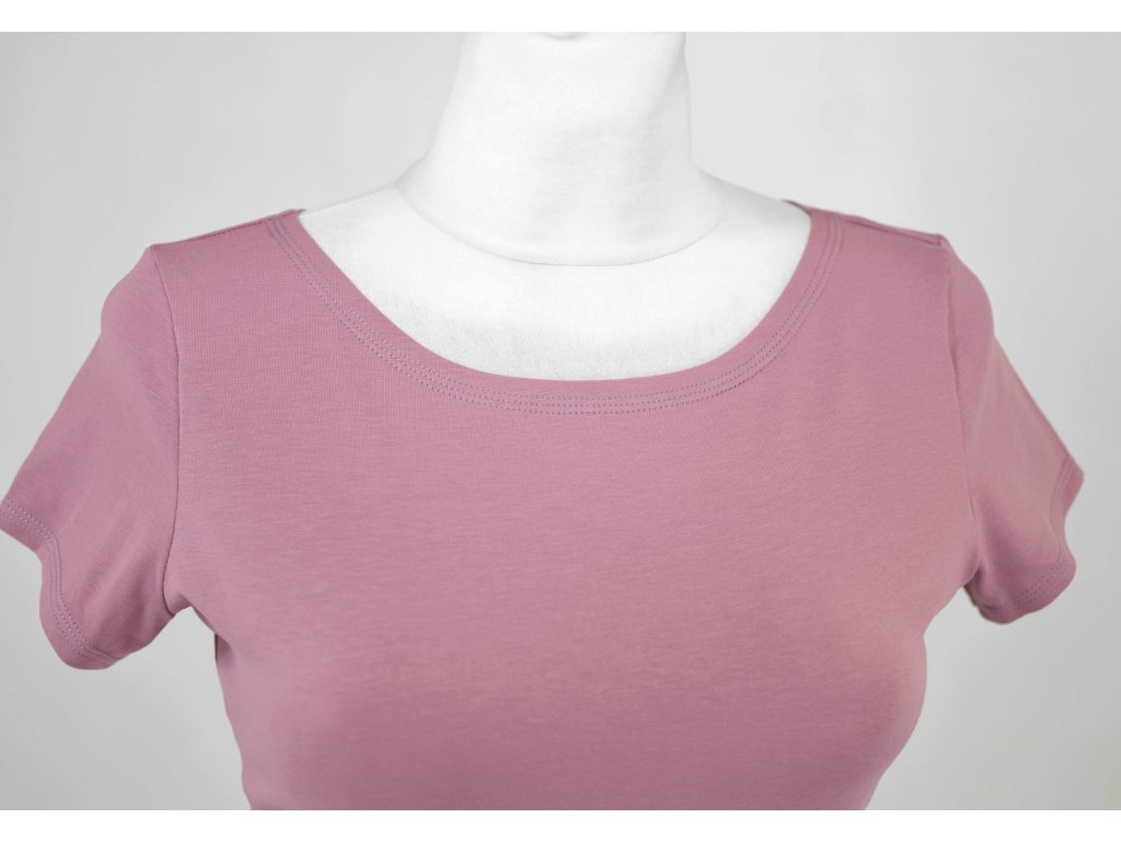 Dámské tričko z příjemného elastického úpletu. V pase projmuté, lodičkový výstřih.