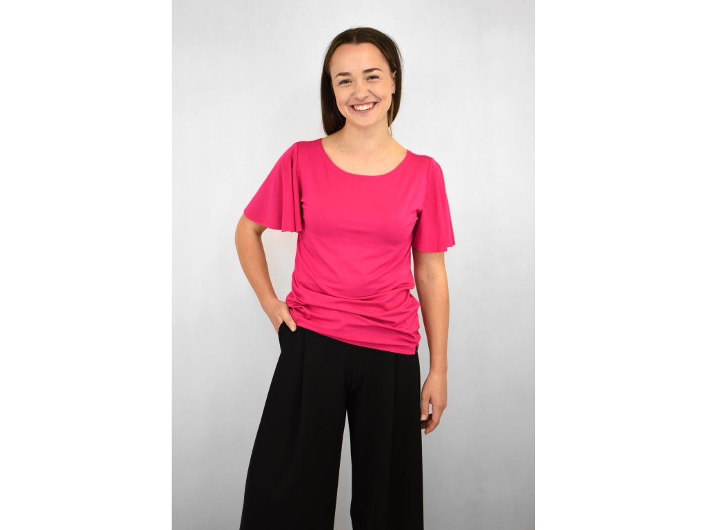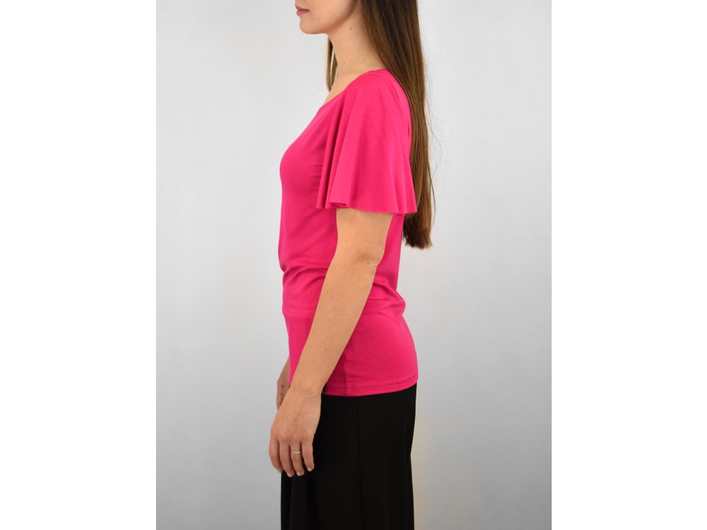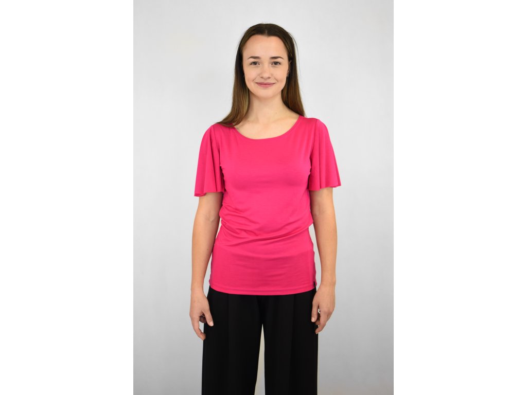 Dámské tričko rovnějšího střihu s výraznými volánovými rukávy. Tričko působí elegantně a velmi žensky. Bambusová viskóza jen přidá na pocitu komfortu - je příjemná na tělo, chladí a je antibakteriální.