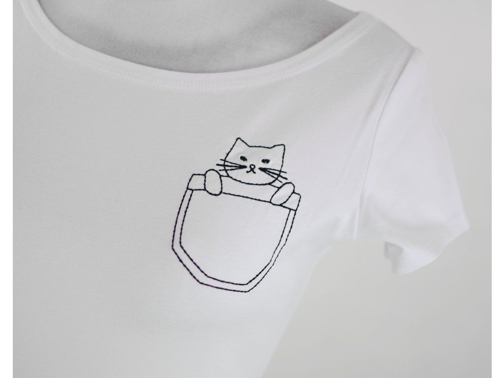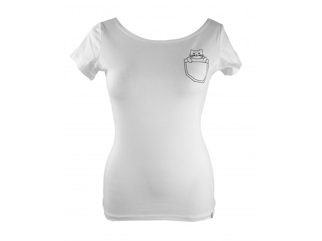 Tričko - bílé - kočka v kapse