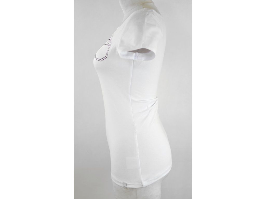Dámské tričko z příjemného elastického úpletu. V pase projmuté, lodičkový výstřih.