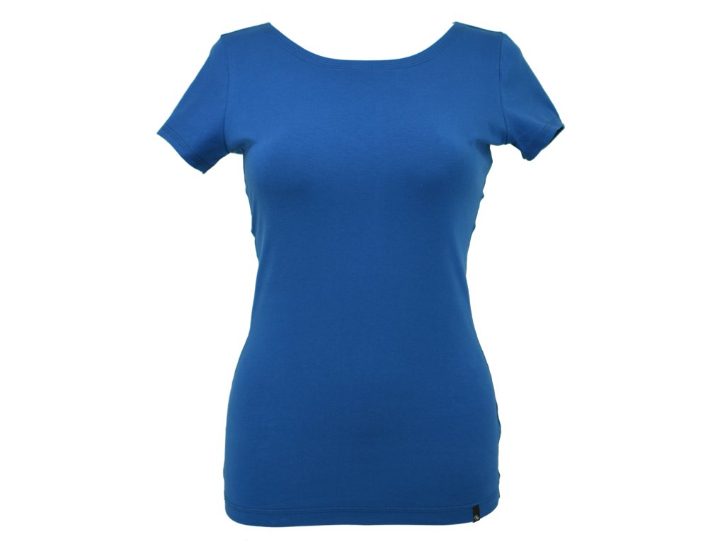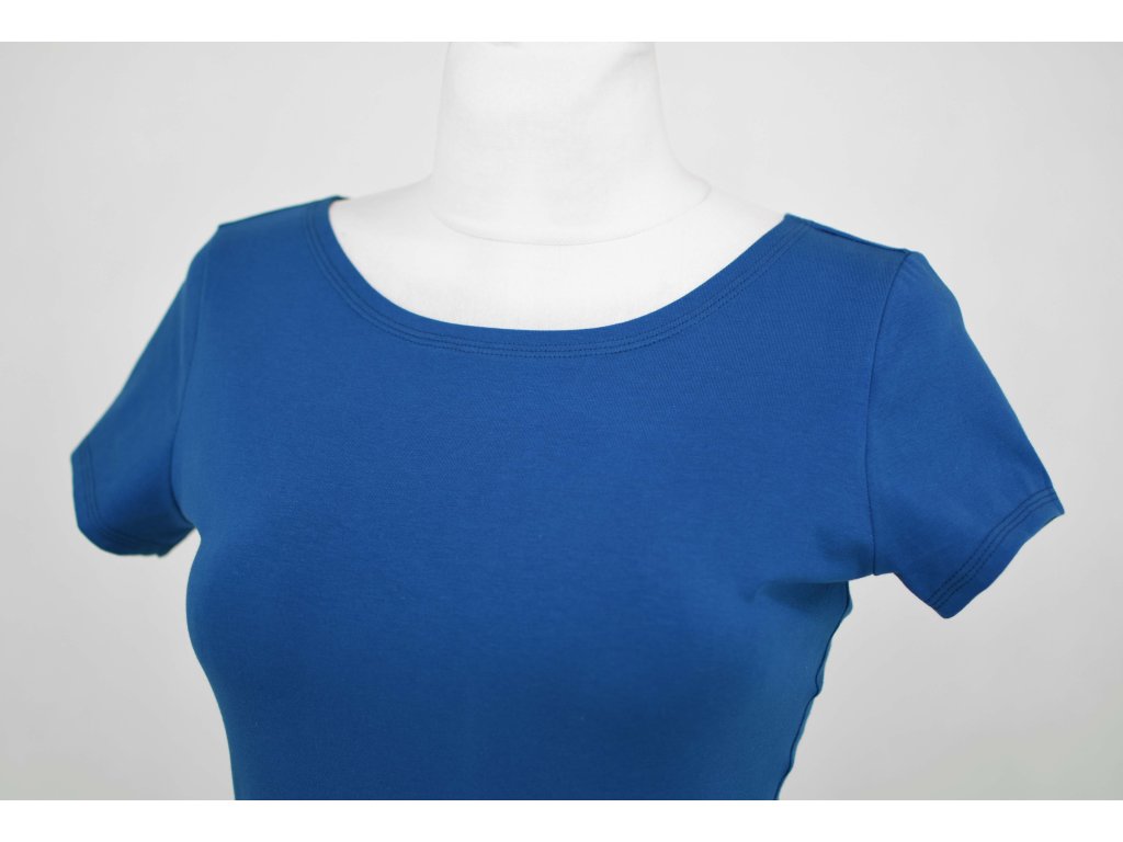Dámské tričko z příjemného elastického úpletu. V pase projmuté, lodičkový výstřih.