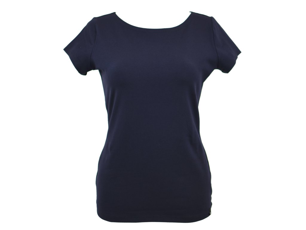 Dámské tričko z příjemného elastického úpletu. V pase projmuté, lodičkový výstřih.