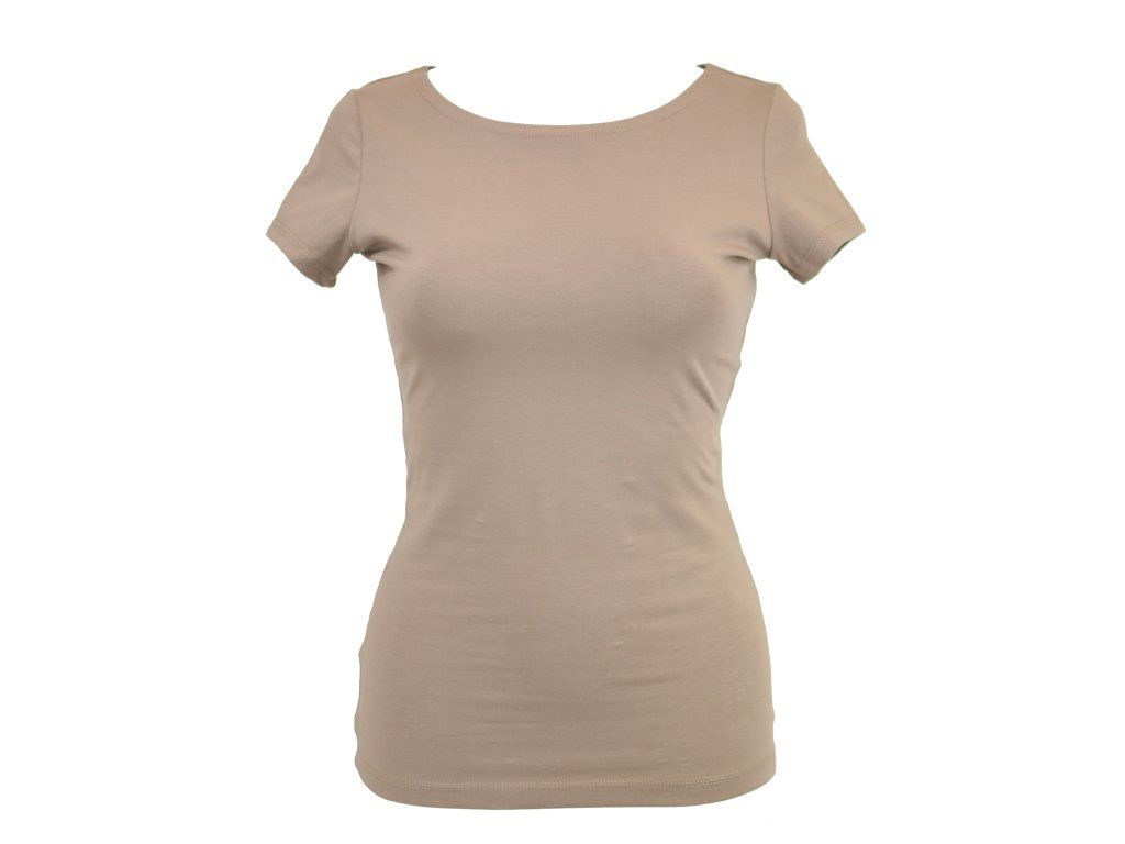 Dámské tričko z příjemného elastického úpletu. V pase projmuté, lodičkový výstřih.
