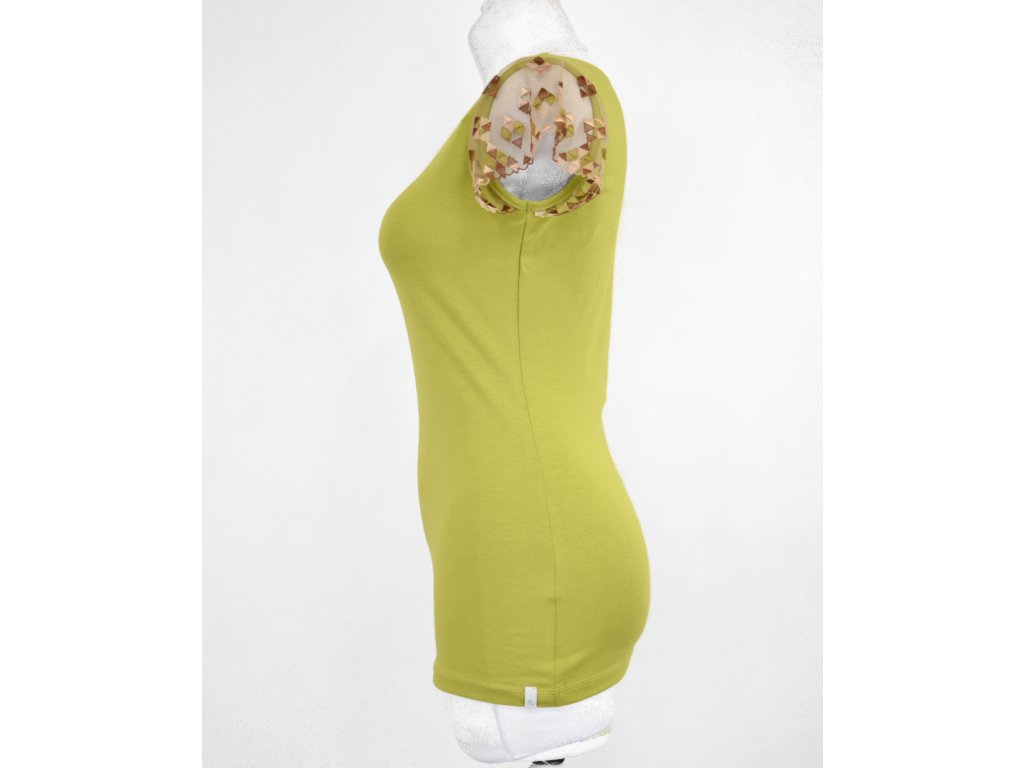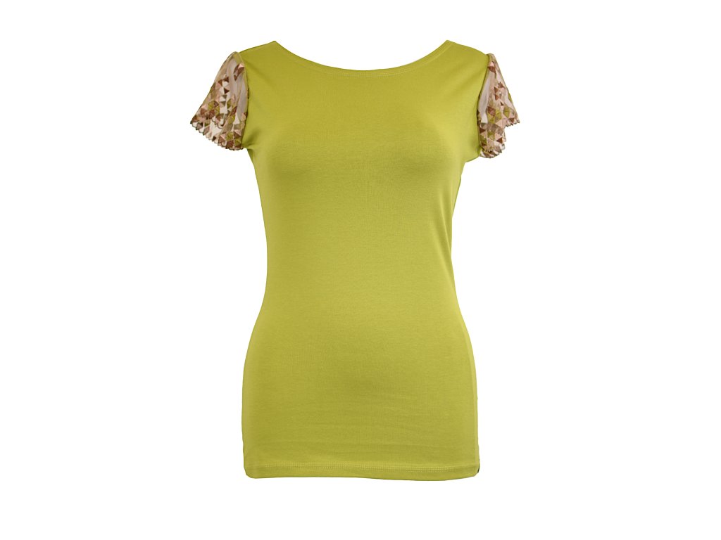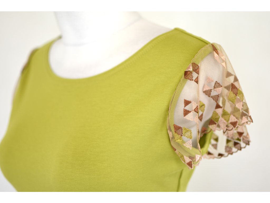 Tričko s krajkovými rukávky - limetkové a trojúhelníčky