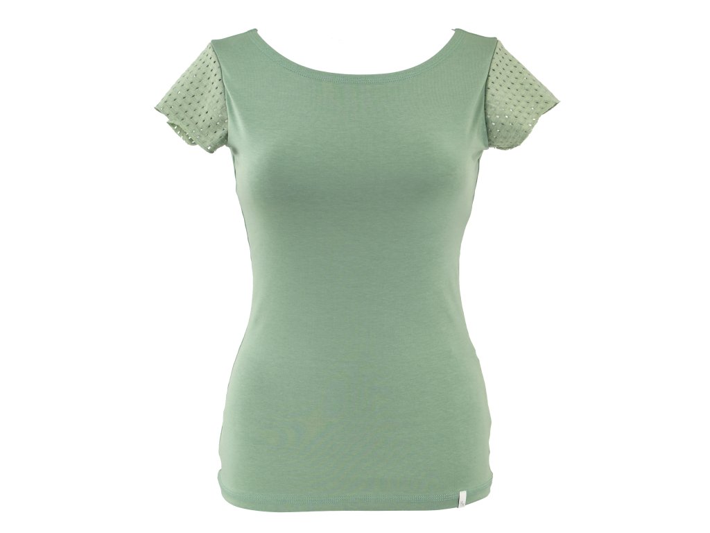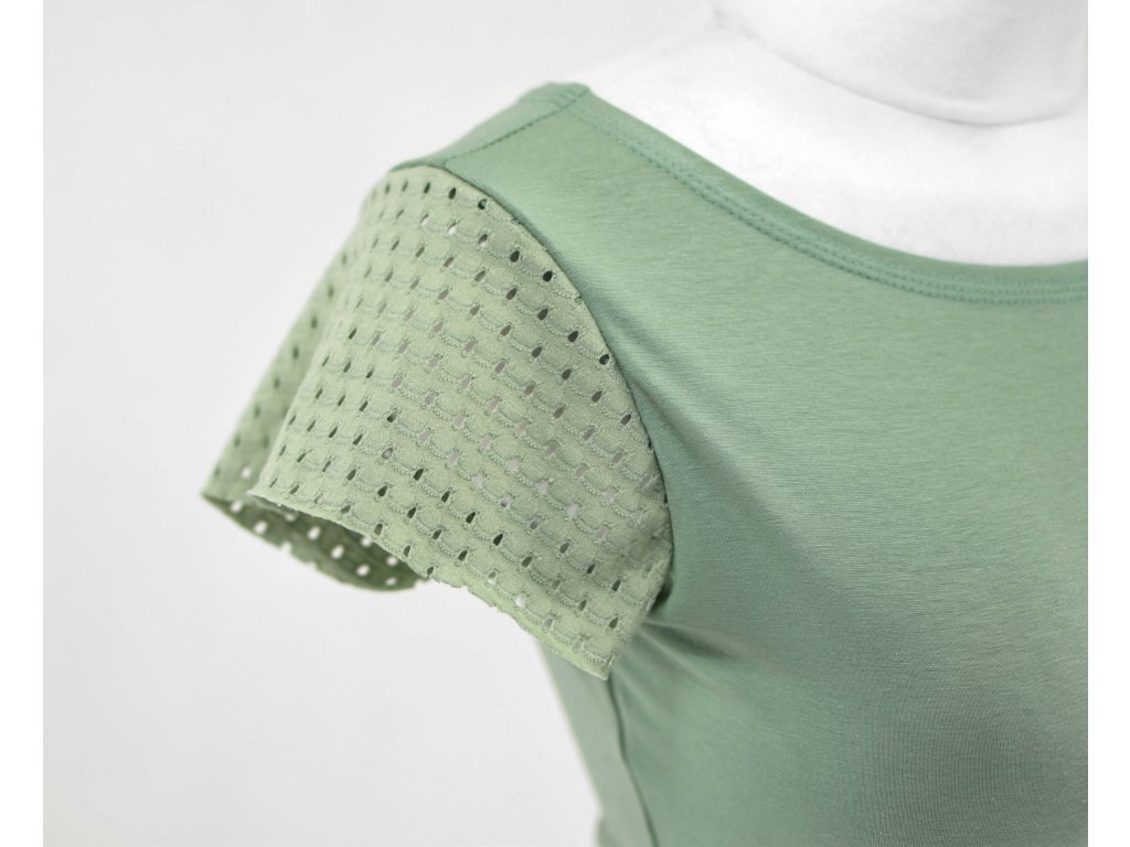 Tričko s madeirovým rukávkem - eukalyptové