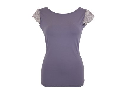 Dámské tričko z elastického úpletu. V pase projmutého střihu, lodičkový výstřih, rukávky jsou volnější a jsou tvořeny pružnou látkou "madeira" - dírkovaná. Okraj rukávku je nezačištěný a při natažení udělá hezkou vlnku.