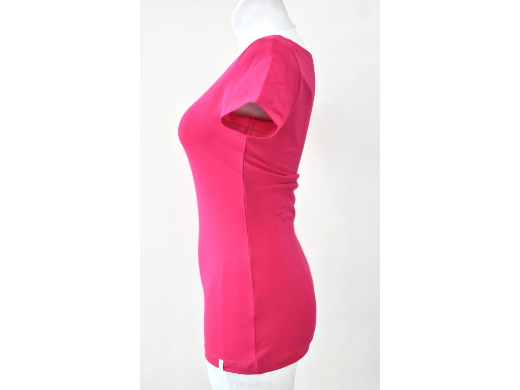 Dámské tričko z příjemného elastického úpletu. V pase projmuté, lodičkový výstřih.