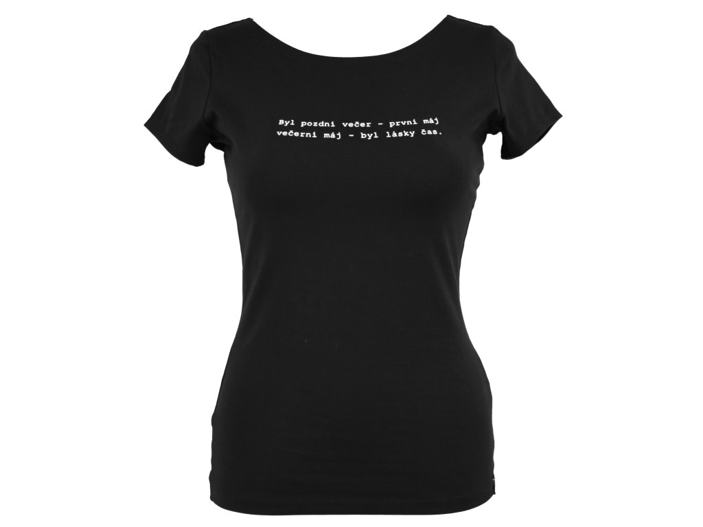 Dámské tričko z příjemného elastického úpletu. V pase projmuté, lodičkový výstřih.