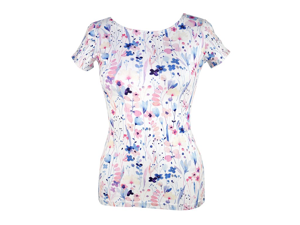 Dámské tričko z příjemného elastického úpletu. V pase projmuté, lodičkový výstřih.
