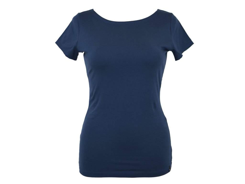 Dámské tričko z příjemného elastického úpletu. V pase projmuté, lodičkový výstřih.