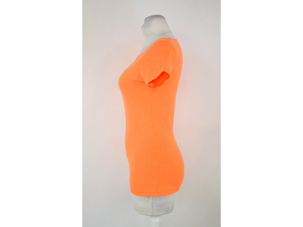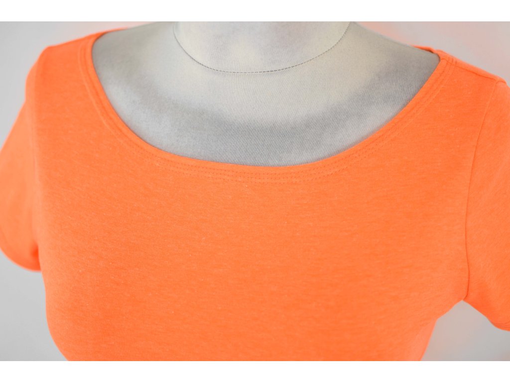 Dámské tričko z příjemného elastického úpletu. V pase projmuté, lodičkový výstřih. Výrazná barva.