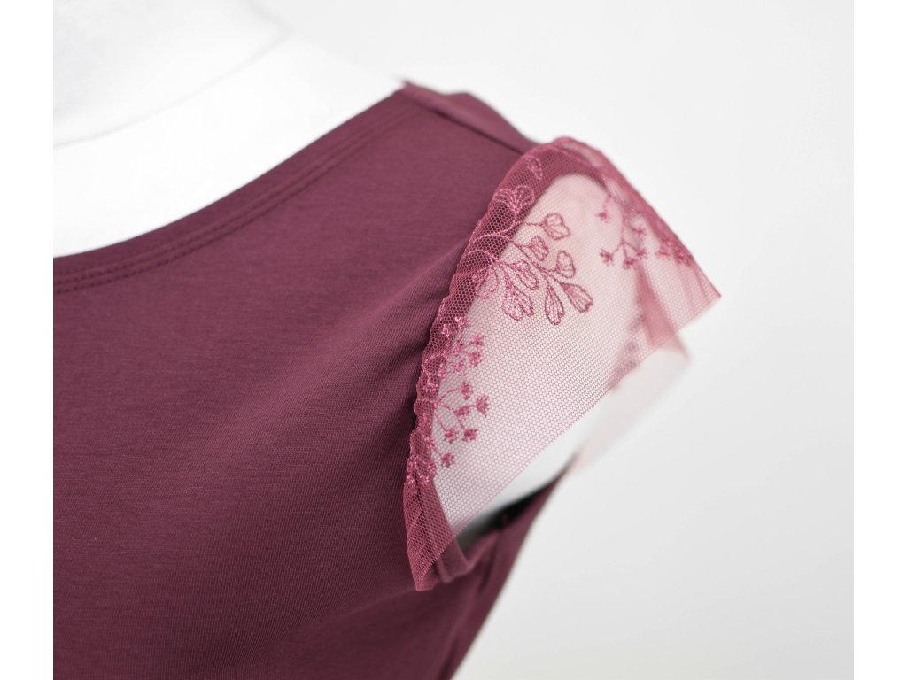 Tričko s krajkovými rukávky - ostružinové a jemná krajka - GOTS