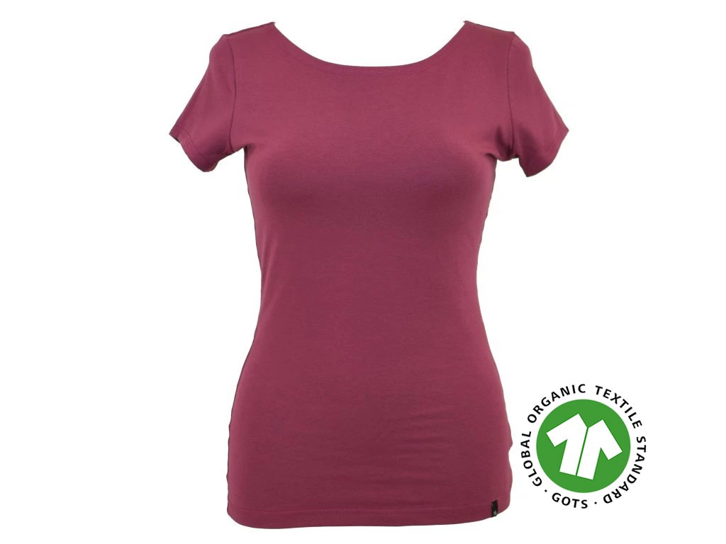 Dámské tričko z příjemného elastického úpletu. V pase projmuté, lodičkový výstřih.