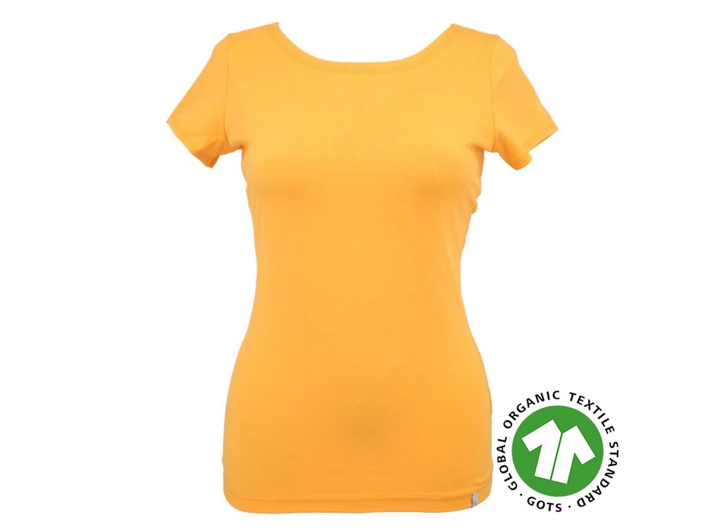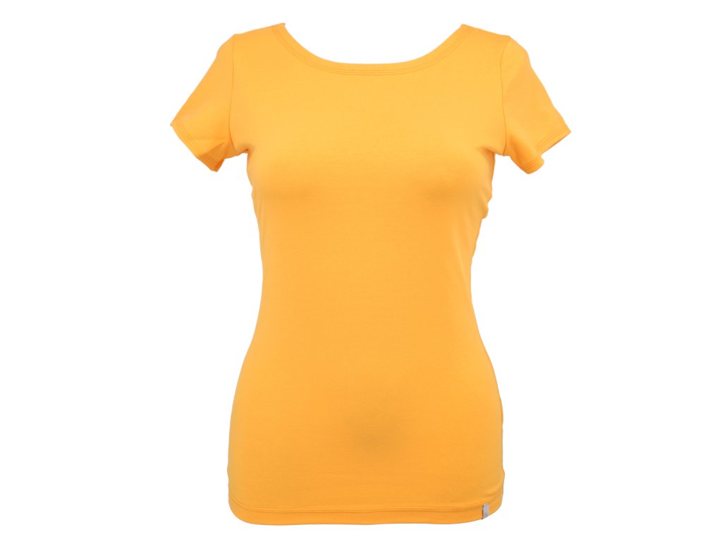 Dámské tričko z příjemného elastického úpletu. V pase projmuté, lodičkový výstřih.