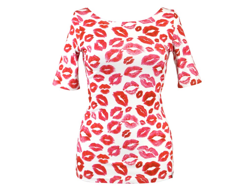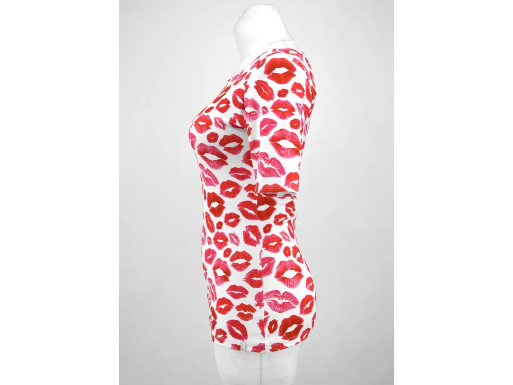 Dámské tričko z příjemného elastického úpletu. V pase projmuté, lodičkový výstřih. Rukávek je delší, ale stále nad loket. :)