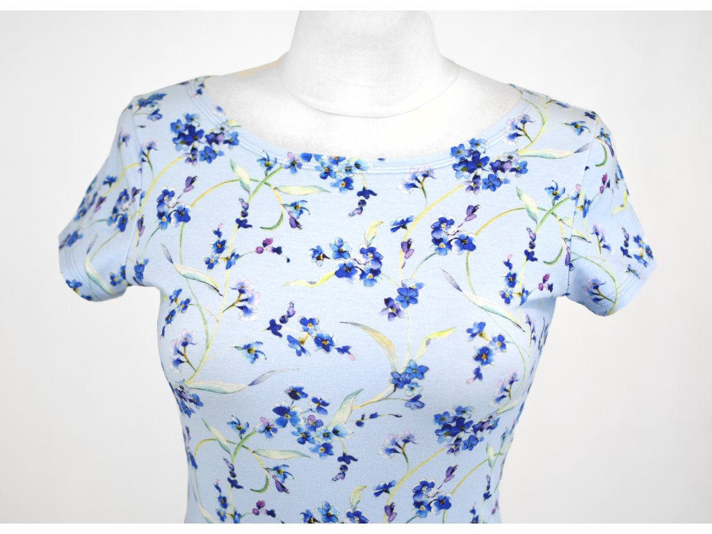 Dámské tričko z příjemného elastického úpletu. V pase projmuté, lodičkový výstřih.