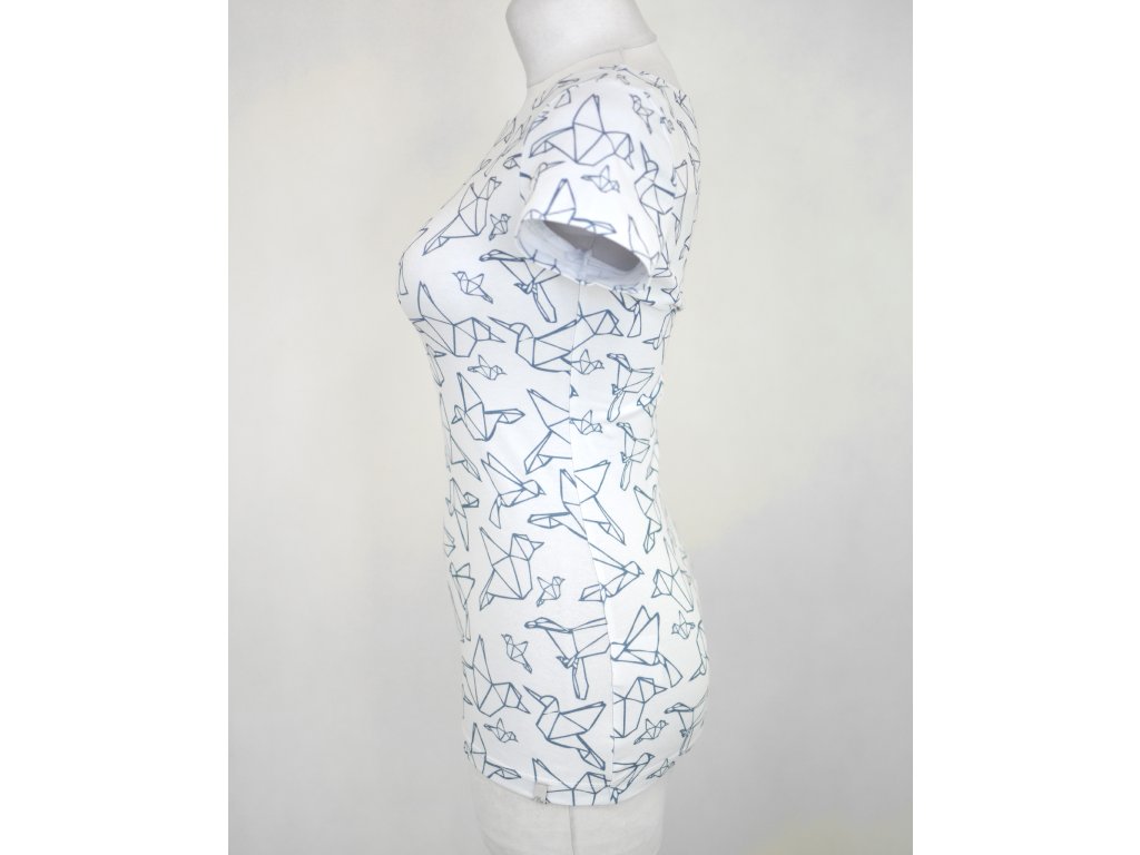 Dámské tričko z příjemného elastického úpletu. V pase projmuté, lodičkový výstřih.