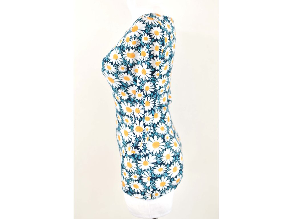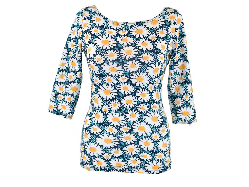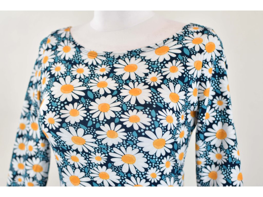 Dámské tričko z příjemného elastického úpletu. V pase projmuté, lodičkový výstřih.
