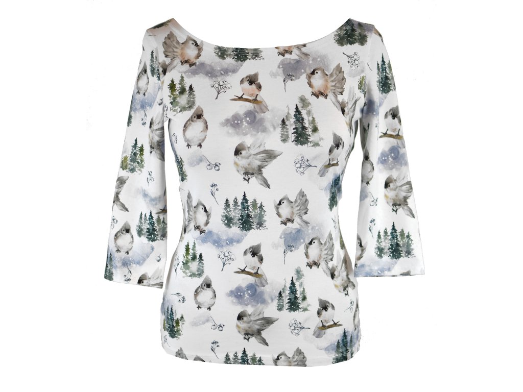 Dámské tričko z příjemného elastického úpletu. V pase projmuté, lodičkový výstřih.