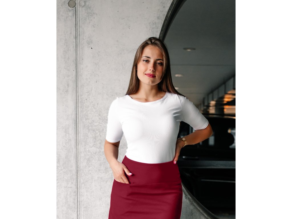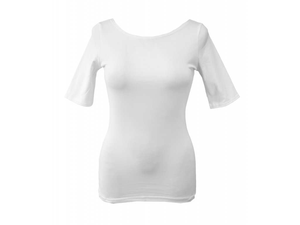 Dámské tričko z příjemného elastického úpletu. V pase projmuté, lodičkový výstřih. Rukávek je delší - cca do půlky bicepsu.