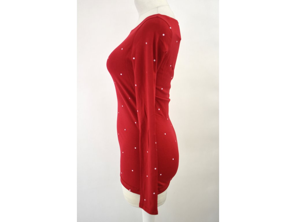 Tričko s dlouhým rukávem - červené s puntíky
