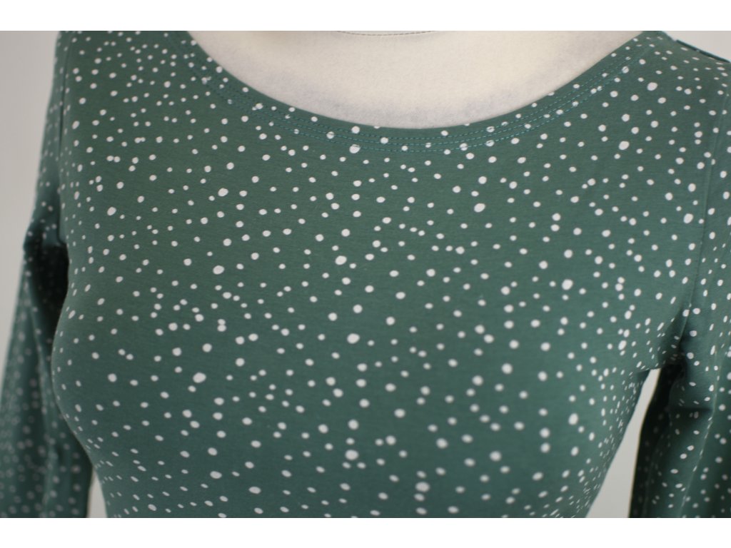 Dámské tričko z příjemného elastického úpletu. V pase projmuté, lodičkový výstřih.