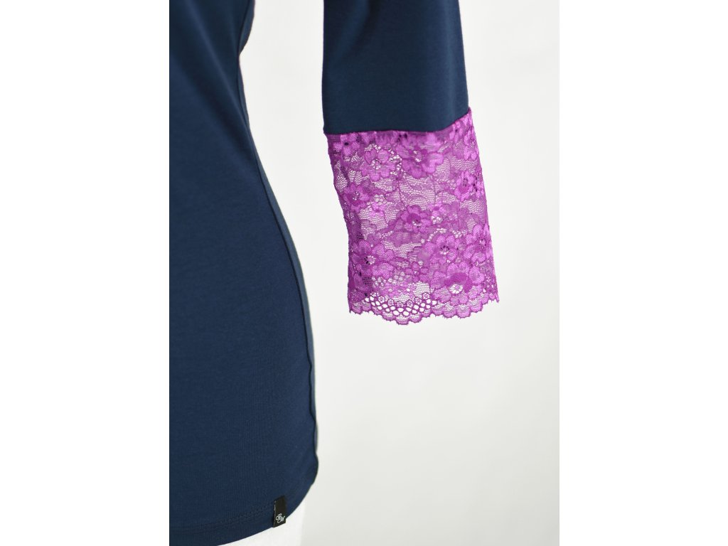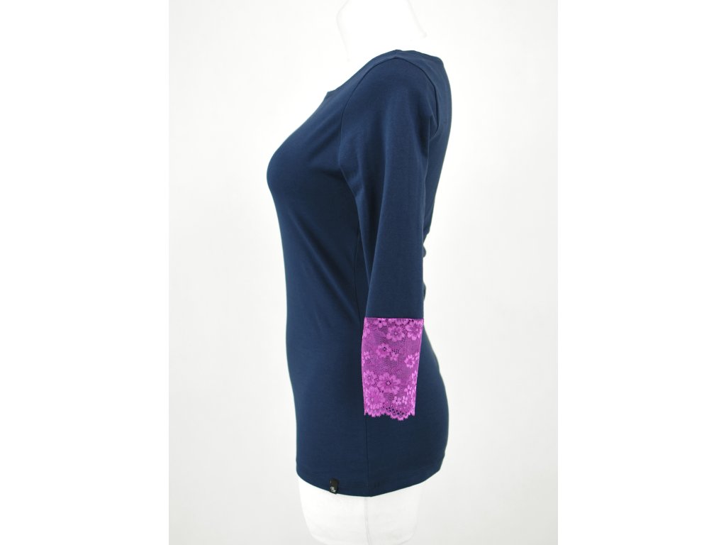 Tričko s krajkou - 3/4 rukáv - modré