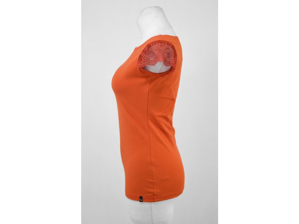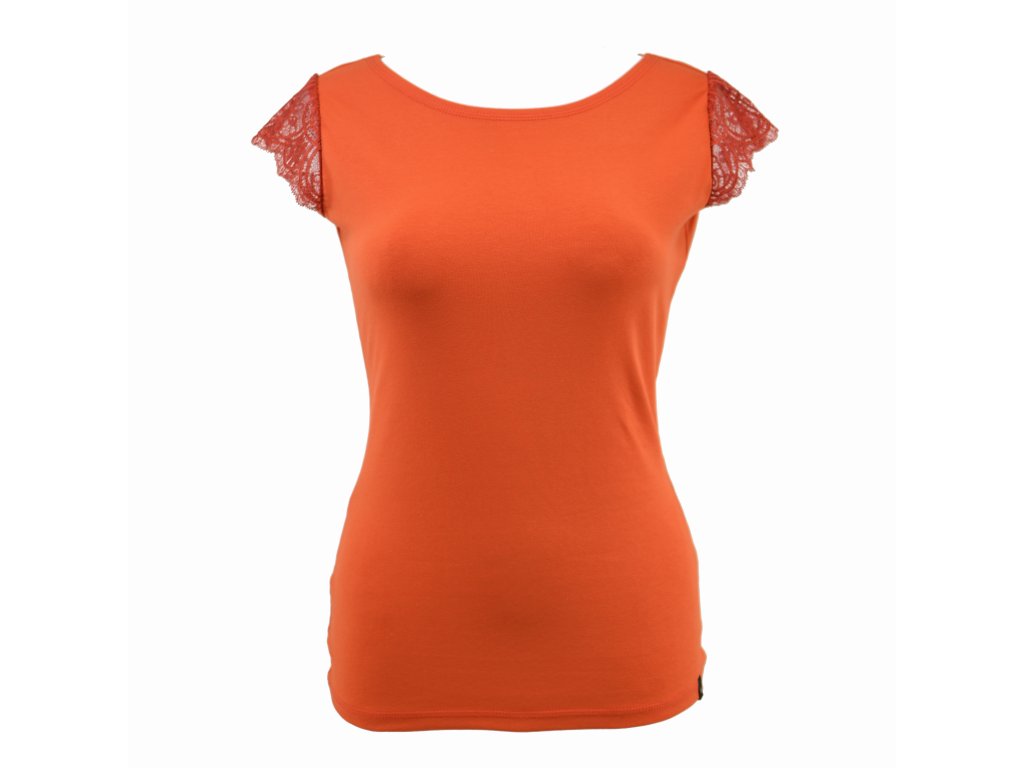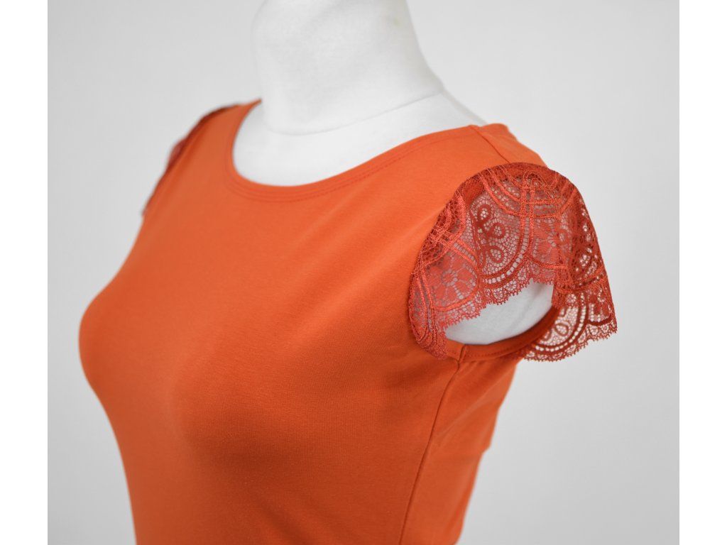 Tričko s krajkovými rukávky - sytě oranžové