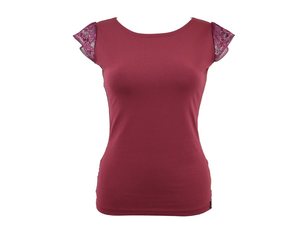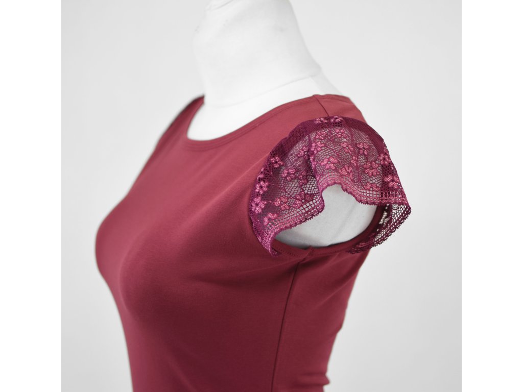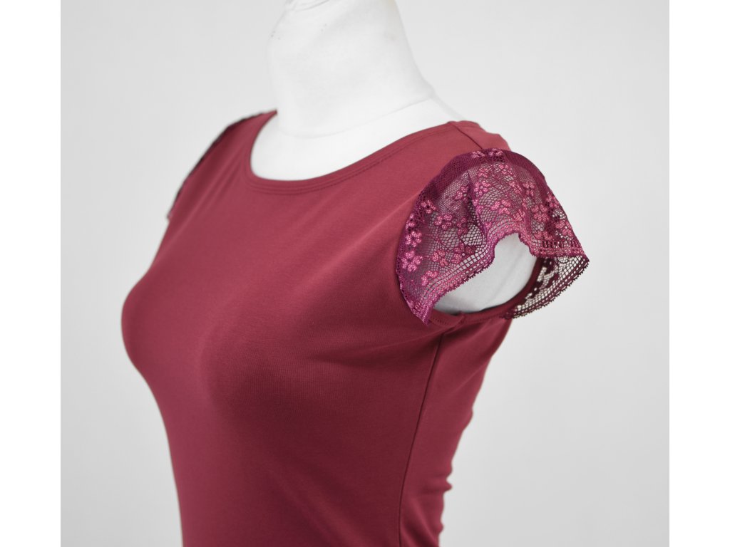 Tričko s krajkovými rukávky - vínové II.JAKOST
