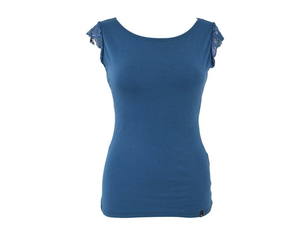 Tričko s krajkovým rukávem - středně modré