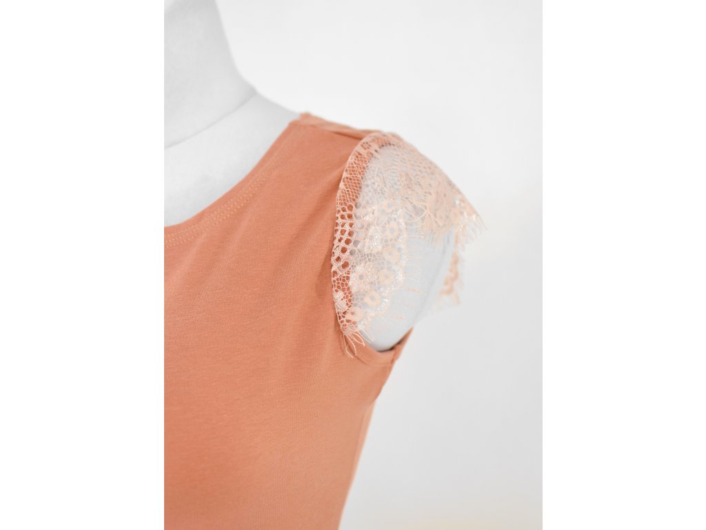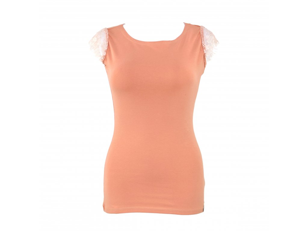 Tričko s krajkovými rukávky - broskvová