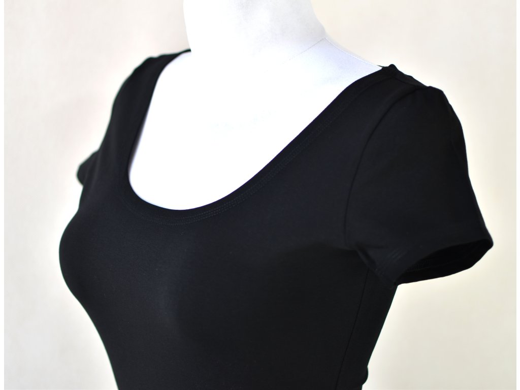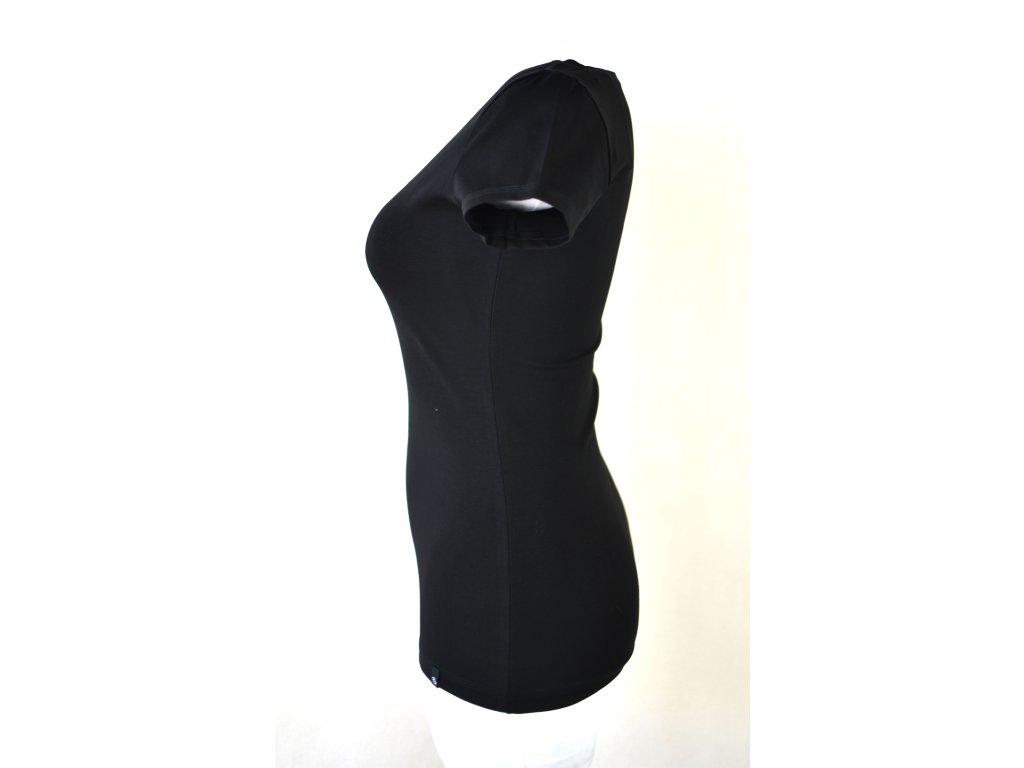 Dámské tričko z příjemného elastického úpletu. V pase projmuté, výstřih je kulatý a více vykrojený.