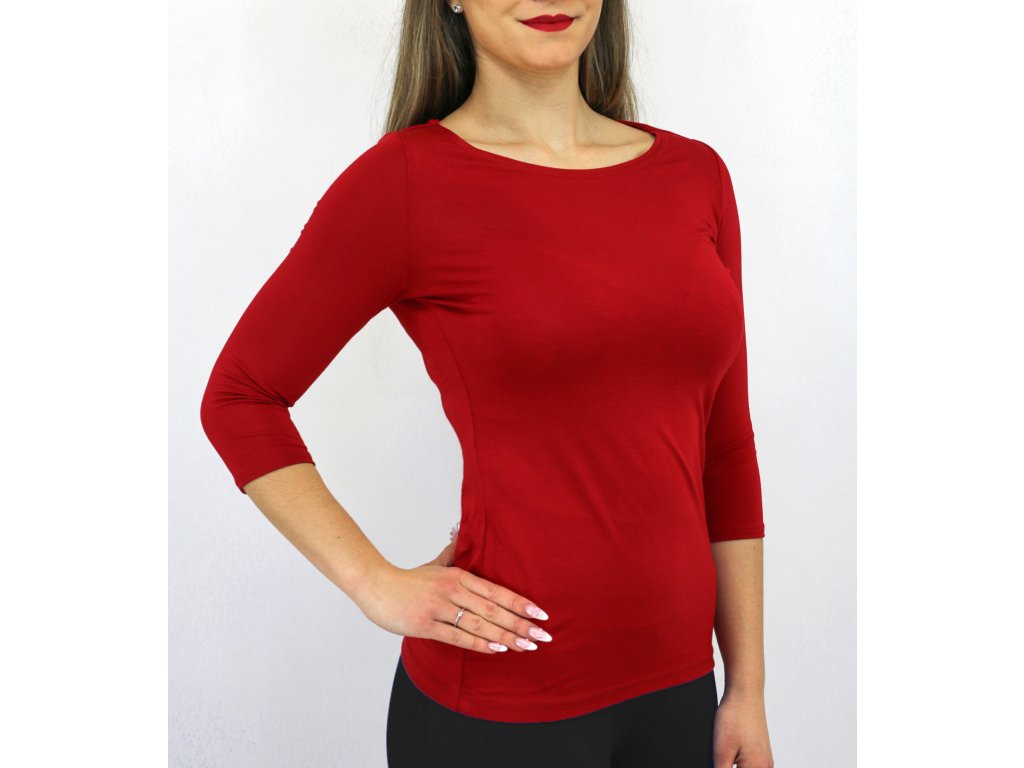 Dámské tričko z bambusového elastického úpletu s 3/4 rukávy. V pase lehce projmuté, lodičkový výstřih. Na zádech je průstřih s překřížením.