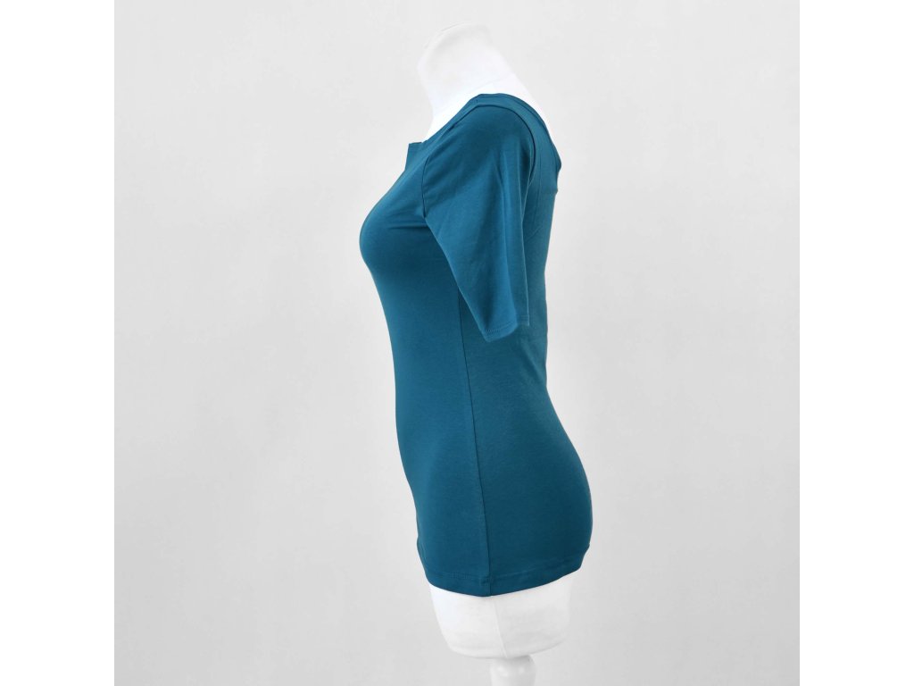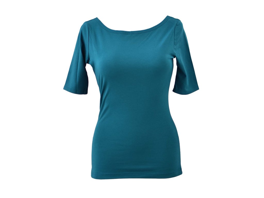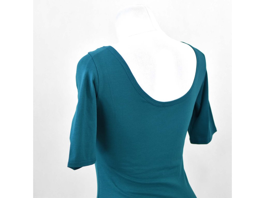 Tričko s výstřihem na zádech a delším rukávkem - petrolejové