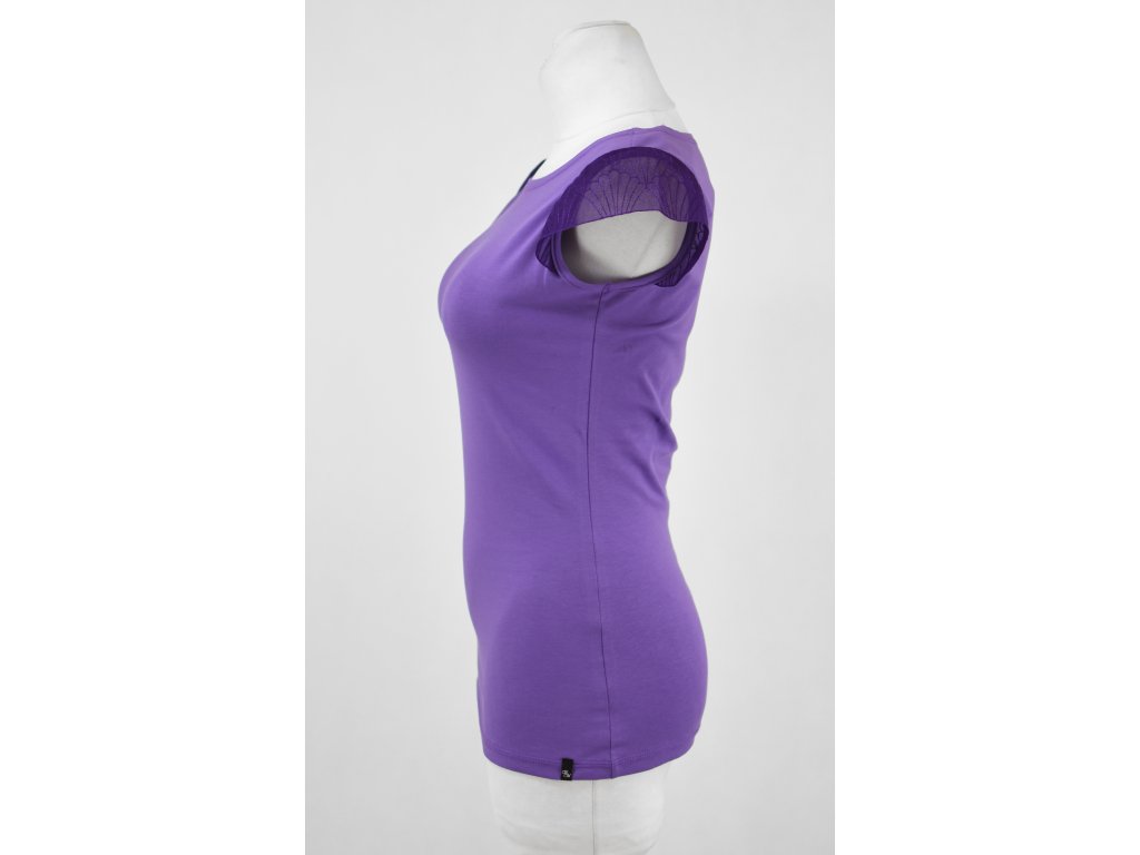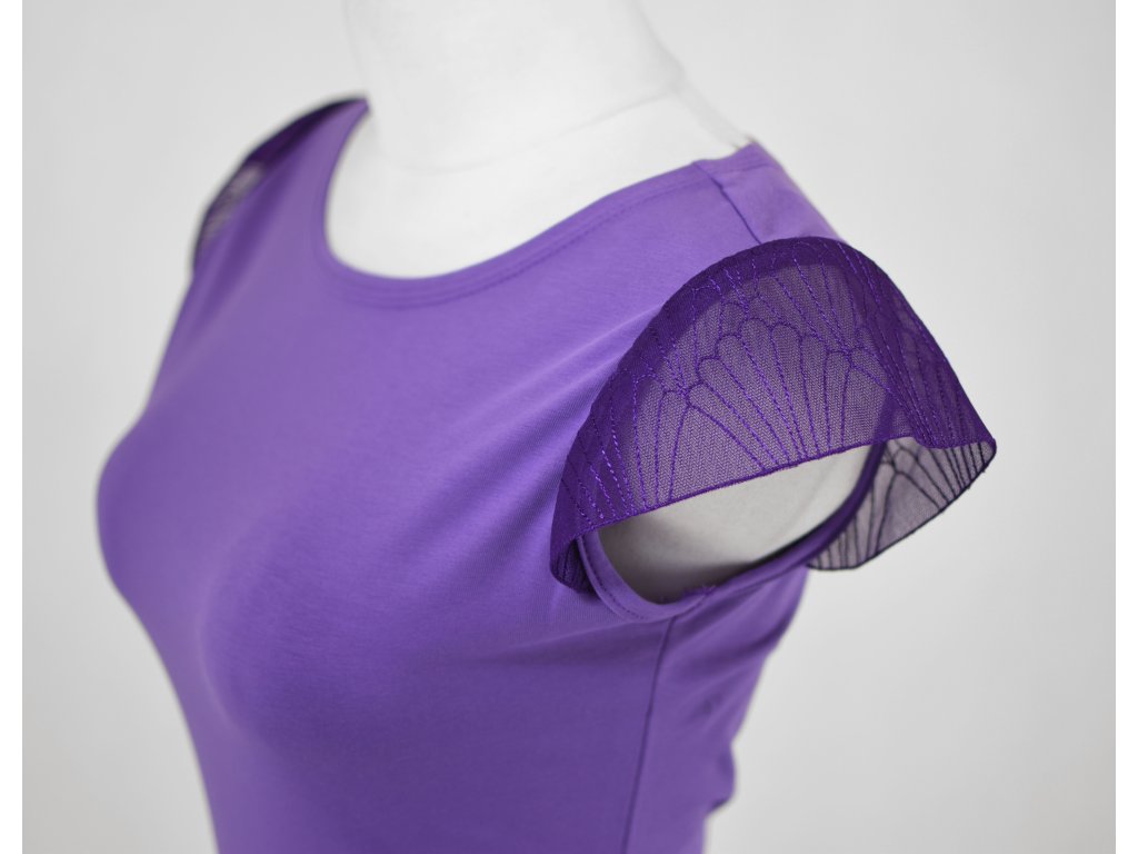 Tričko s krajkovými rukávky - šeříkové a švestková krajka