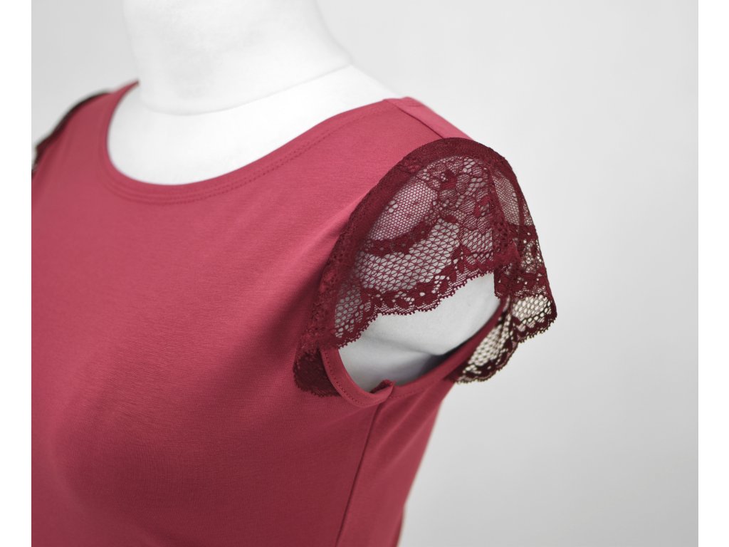 Tričko s krajkovými rukávky - světle vínové a bordó krajka II.JAKOST