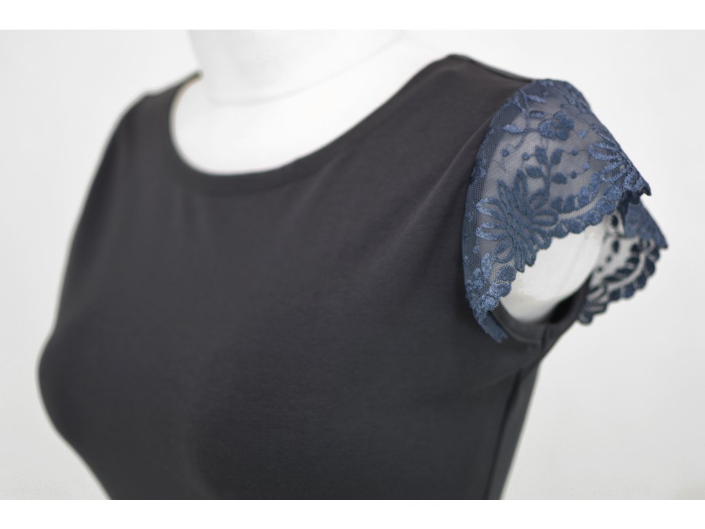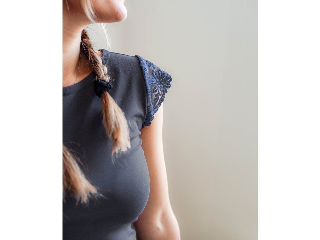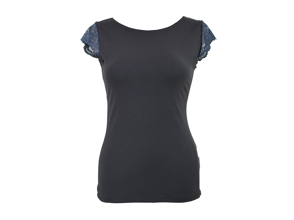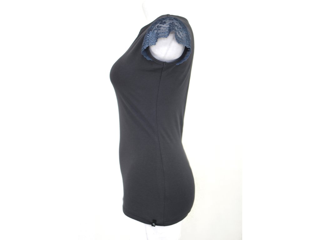 Tričko s krajkovými rukávky - šedá krajka