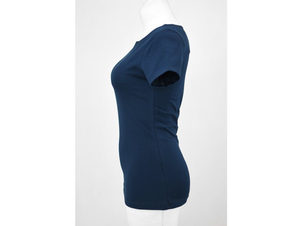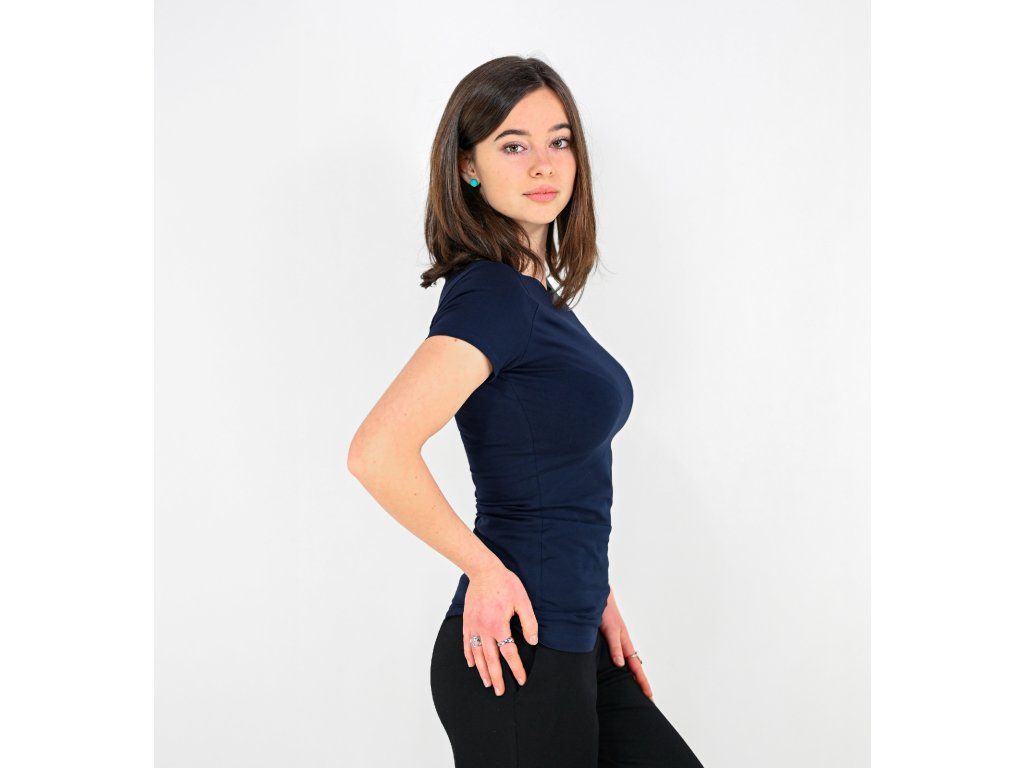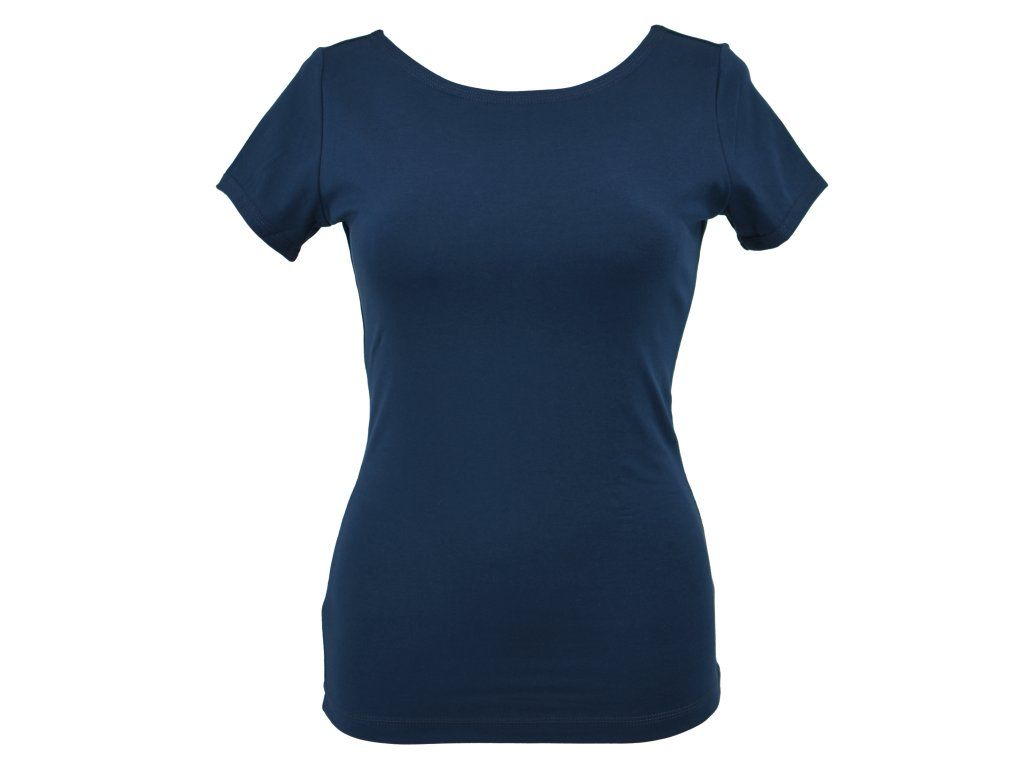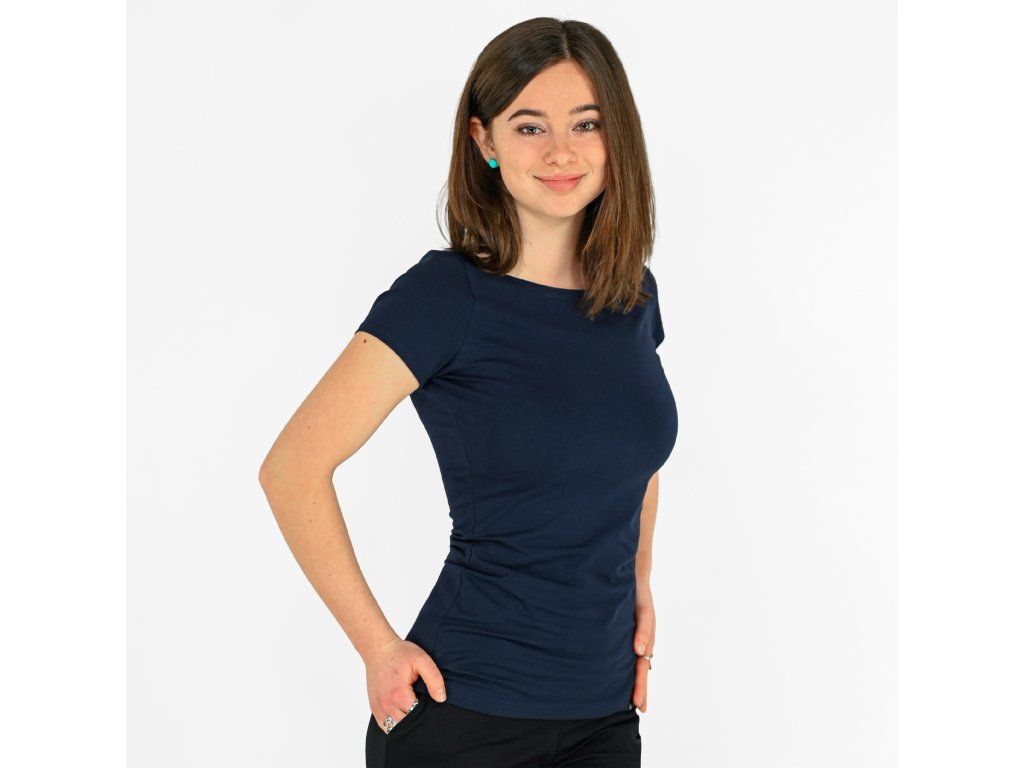 Dámské tričko z příjemného elastického úpletu. V pase projmuté, lodičkový výstřih.