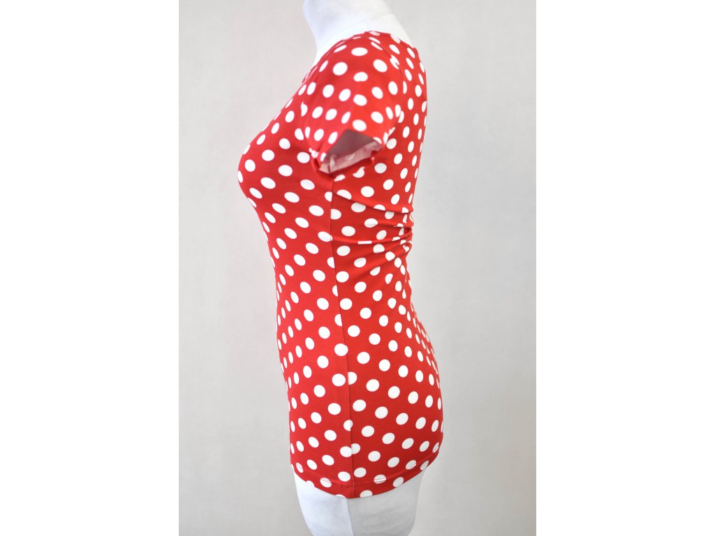 Dámské tričko z příjemného elastického úpletu. V pase projmuté, lodičkový výstřih.