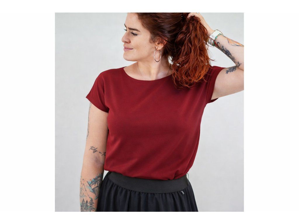 Dámské oversize tričko rovného střihu z příjemného elastického úpletu. Lodičkový výstřih.