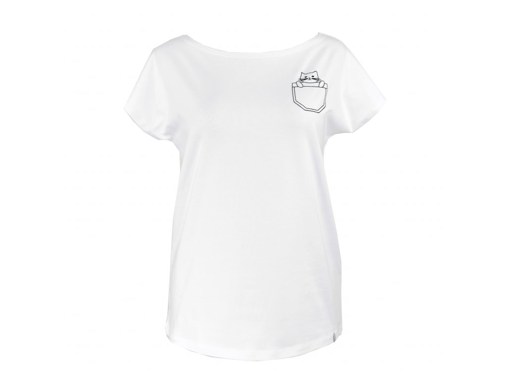 Dámské oversize tričko rovného střihu z příjemného elastického úpletu. Lodičkový výstřih. Výšivka kapsy a kočičky.