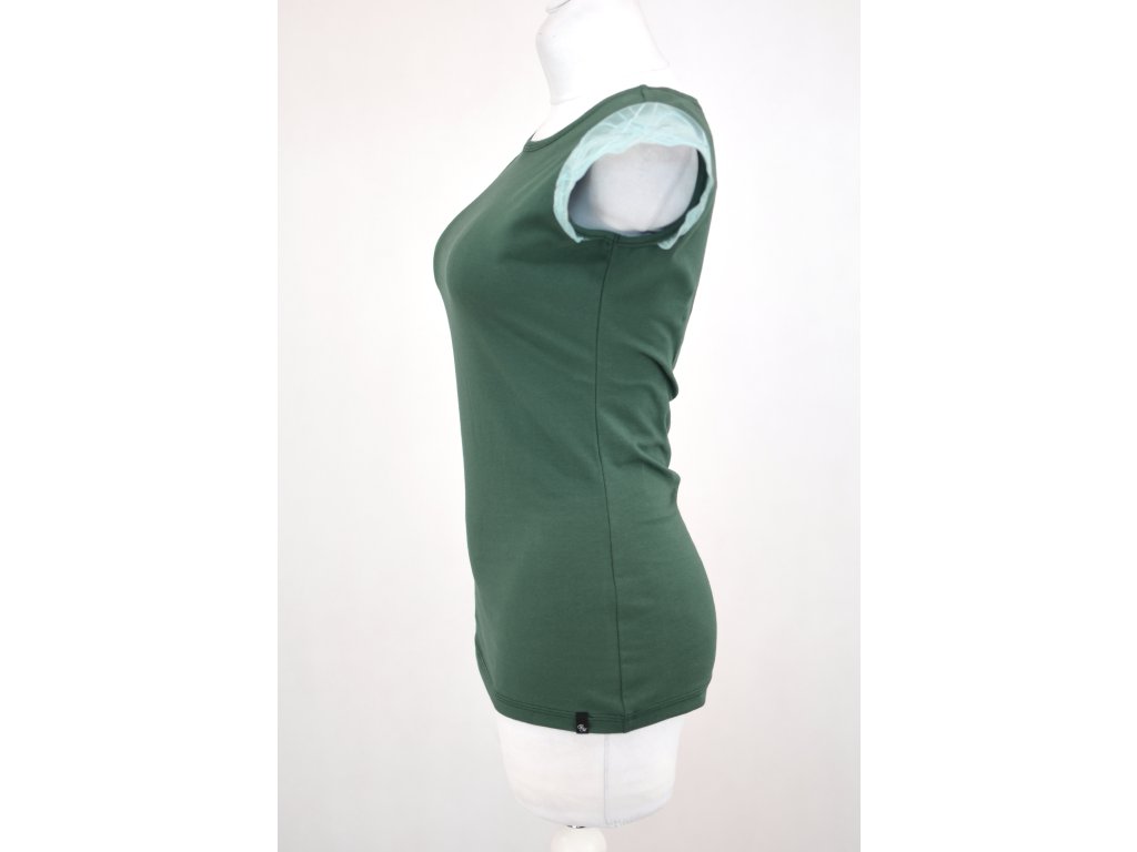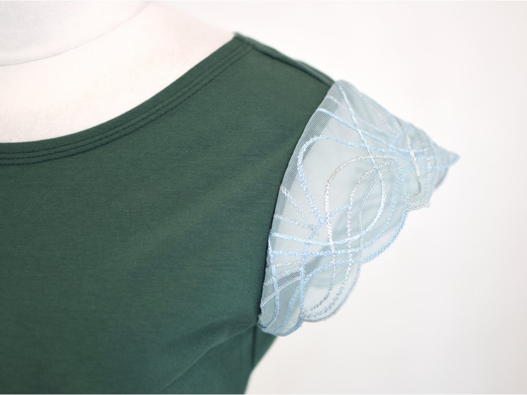 Tričko s krajkovými rukávky - zelené a bledě modrá krajka