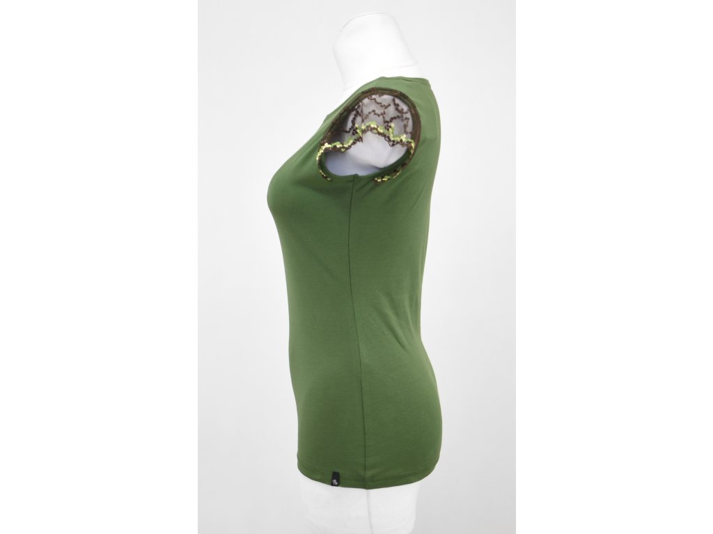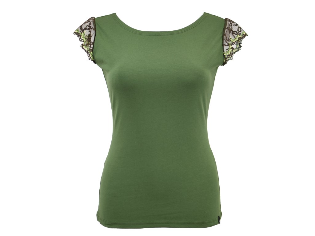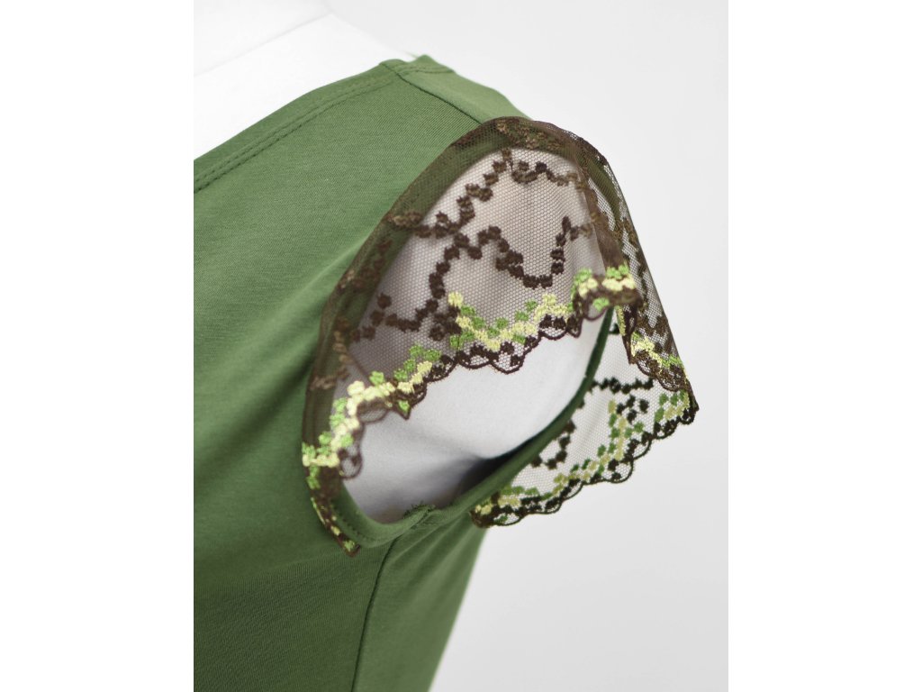 Tričko s krajkovými rukávky - zelené a hnědá krajka