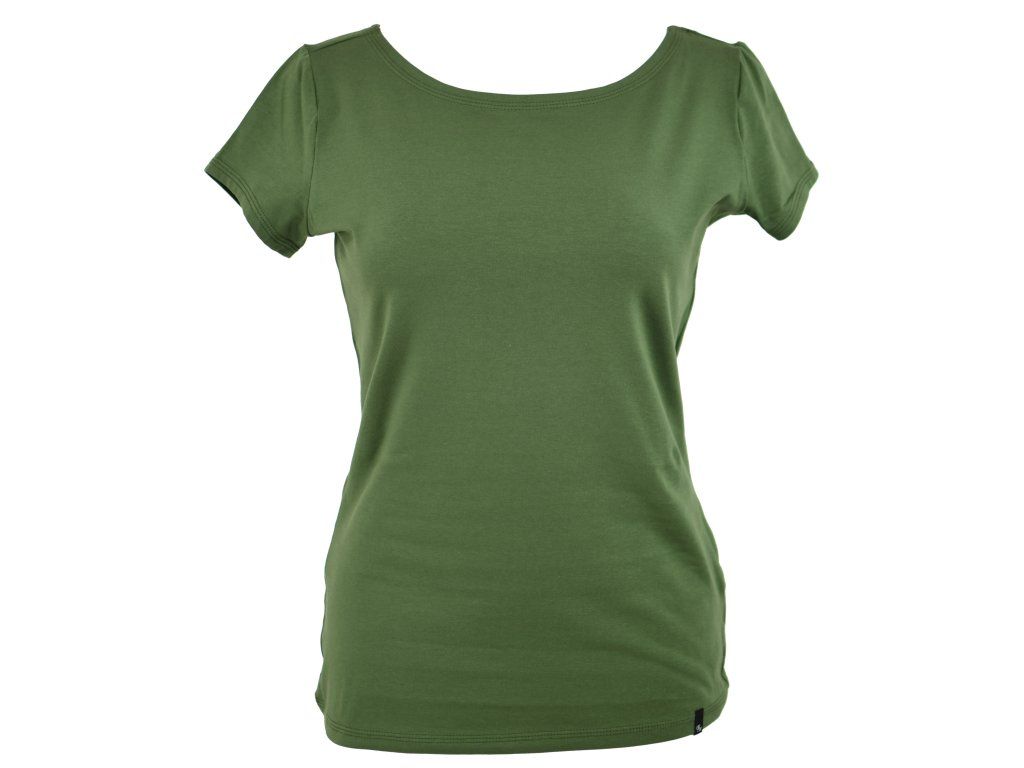 Dámské tričko z příjemného elastického úpletu, který se krásně přizpůsobí postavě a zároveň neomezuje v pohybu. Má krátký rukáv a lodičkový výstřih, který působí jemně a žensky. Střih lehce kopíruje siluetu, ale díky zvolenému materiálu zůstává pohodlné po celý den.