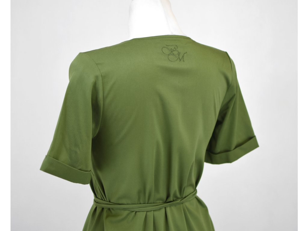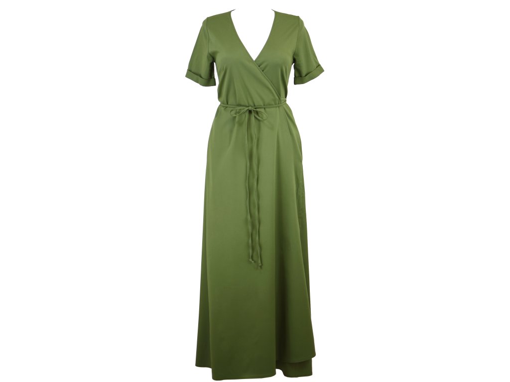 Dámské dlouhé zavinovací šaty z příjemné viskózy. Jsou ušity z několika metrů látky, kterou si páskem zavinete kolem těla (na pravém boku je otvor, kterým protáhnete pásek). Mají véčkový výstřih - tak akorát hluboký, zdůrazní pas a přes boky jsou volné. Mají skryté kapsy v bocích... :)