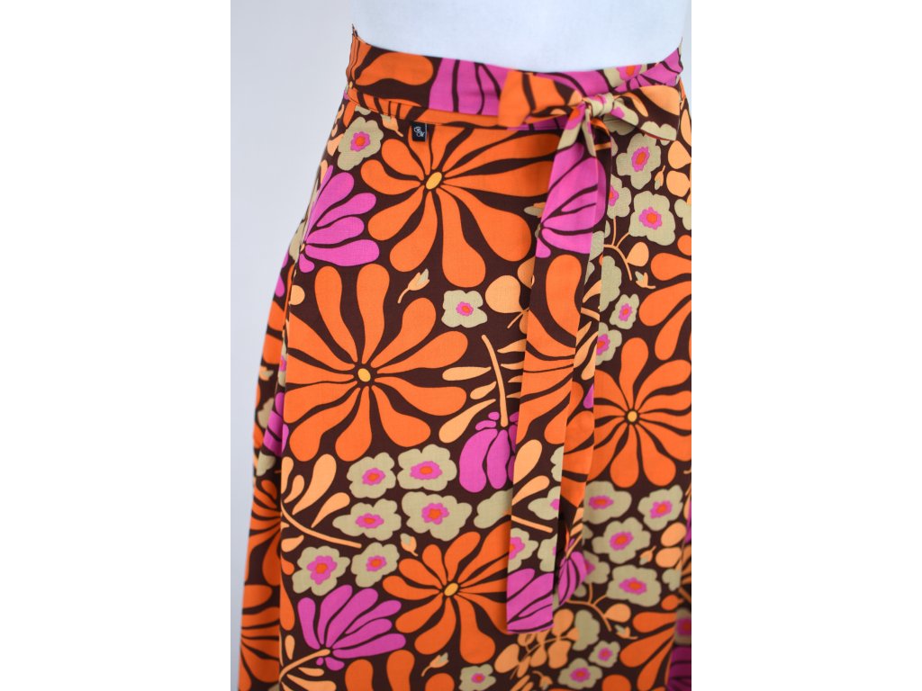 Zavinovací sukně je ušita z několika metrů látky, kterou si páskem zavinete kolem těla (na pravém boku je otvor, kterým protáhnete pásek). Vzadu je delší a vepředu kratší a asymetrická. V bocích má skryté kapsy - ty jsou dobrým ukazatelem, že máte sukni správně posazenou... : )