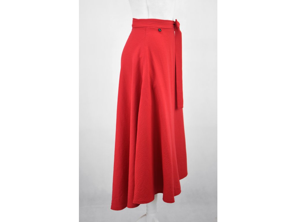 Zavinovací sukně je ušita z několika metrů látky, kterou si páskem zavinete kolem těla (na pravém boku je otvor, kterým protáhnete pásek). Vzadu je delší a vepředu kratší a asymetrická. V bocích má skryté kapsy - ty jsou dobrým ukazatelem, že máte sukni správně posazenou... : )